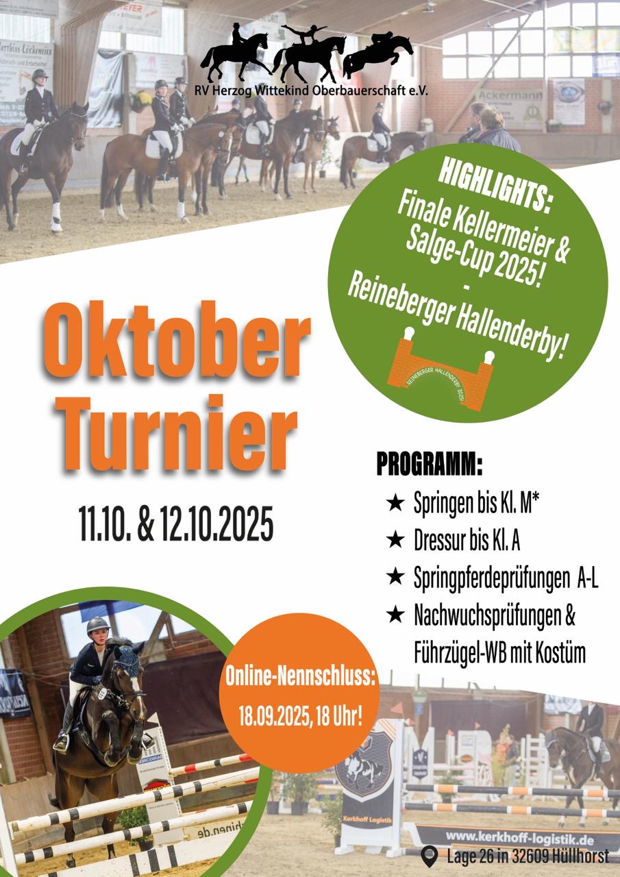 Seit vielen Jahren ist das große Oktoberturnier des RV Oberbauerschaft e.V. ein fester Bestandteil im Turnierkalender des Westfalenverbandes. Dieses Jahr füllte sich die Reithalle am Reineberg etwas früher - schon im September - zum Herbstturnier.