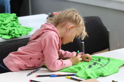 Das Sommercamp begann am Samstag um 10 Uhr. Schnell füllte sich die Reithalle des Vereins mit den teilnehmenden Kindern und ihren Eltern. Nach gemeinsamen Aufwärmspielen erfolgte eine Aufteilung der Teilnehmer/innen in fünf Gruppen. Anschließend gestaltete jede Gruppe eine eigene Flagge mit einem selbst ausgewählten Gruppennamen. Am Nachmittag konnten die Kinder an verschiedenen Stationen zum Beispiel das Voltigieren oder das Reiten kennenlernen. Außerdem wurden, als Erinnerung an das Wochenende, Sommercamp T-Shirts bemalt und mit Bügelbildern verziert, die jedes Kind mit nach Hause nehmen konnte.