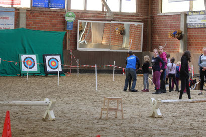 Eine Besonderheit in diesem Jahr: Die Bogenschützen des benachbarten Vereins "Blau-Weiß Oberbauerschaft" zeigten den Kindern, wie sie mit Pfeilen auf Scheiben und Luftballons schießen konnten.